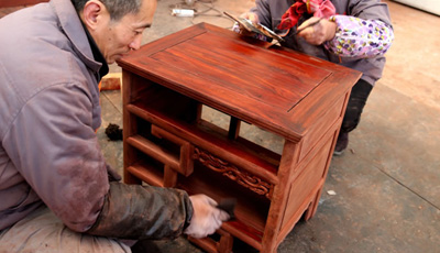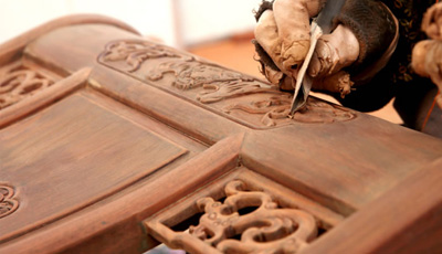 流程三雕刻工序 為了讓紅木家具看上去更美觀,在木工工序完成之后一般都會(huì)用一些或簡(jiǎn)單或復(fù)雜的雕花來(lái)進(jìn)行裝飾,也就是行業(yè)中所說(shuō)的雕刻紋飾。雕刻紋飾必須在“認(rèn)榫”完成后進(jìn)行,因?yàn)椤罢J(rèn)榫”時(shí)需要修整,如果先做好雕花再開(kāi)榫,紋理很難保證雕花部件都在同一平面上,而此時(shí)為了保證雕花...